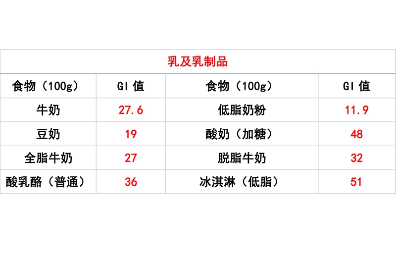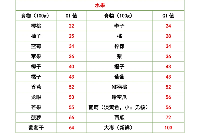 常见食物升糖指数表