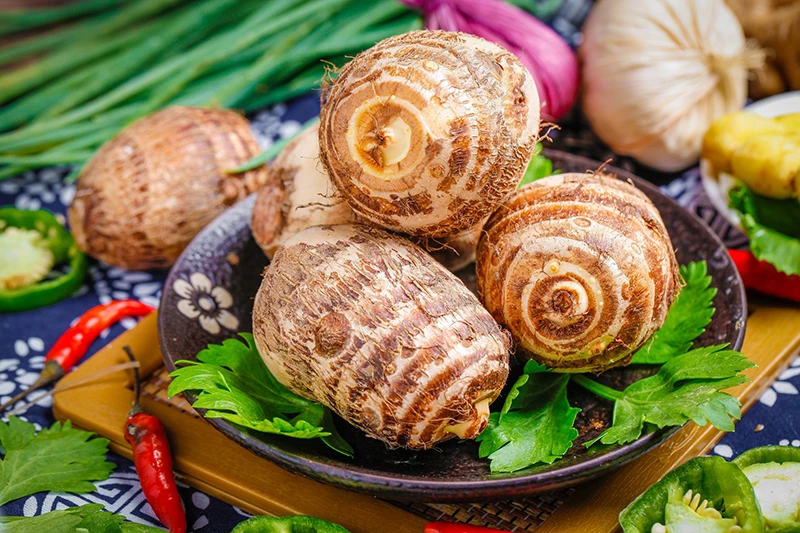 芋头中富含膳食纤维,可增加饱腹感,促进肠胃蠕动,缓解便秘。